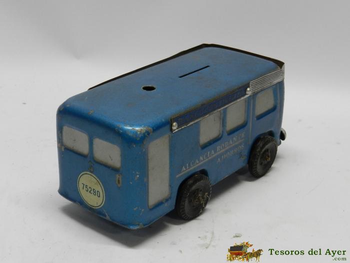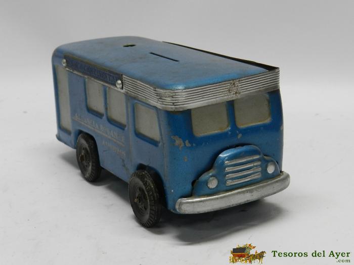 ANTIGUA HUCHA DE METAL, CAMION BANCO CONTINENTAL, AUTOBUS, MIDE 18 X 8 X 8 CMS.
