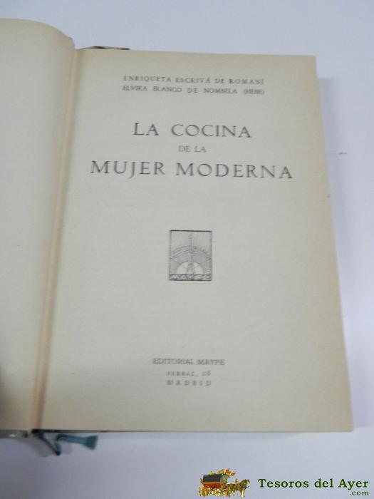 LA COCINA DE LA MUJER MODERNA. ESCRIVÁ DE ROMANÍ, E / BLANCO DE NOMBELA, E (HEBE). AÑO 1955 1ª EDICIóN, TIENE 352 PáGINAS ILUSTRADAS CON DIBUJOS EN TEXTO Y LáMINAS CON FOTOS. MIDE 25 X 18 CMS.
