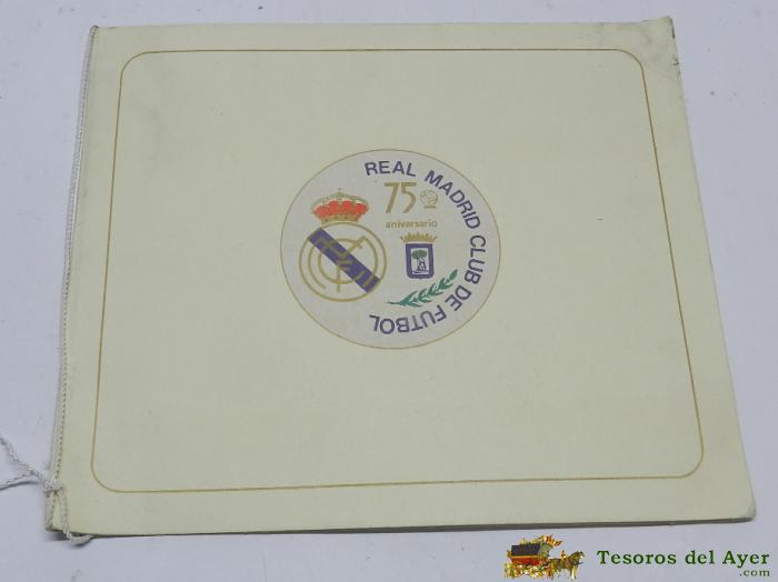 REAL MADRID, SELLOS 75 DEL ANIVERSARIO, CONTIENE 16 SELLOS DEL 75 ANIVERSARIO + 9 SELLOS DE FUTBOL EMITIDOS POR GUINEA ECUATORIAL, LA CARPETA MIDE 24 X 21 CMS.
