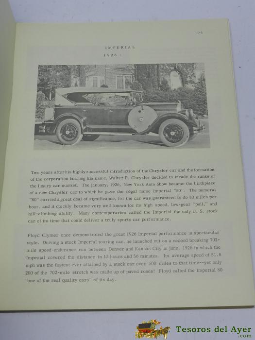 CATALOGO COCHES CHRYLER, A PICTORIAL HISTORY OF CHRYLER CORPORATION CARS - HISTORIA GRAFICA DE LOS CHRYSLER 1925 / 1975, MUCHAS FOTORAFIAS DE TODOS LOS MODELOS, MIDE 28 X 21,5 CMS.