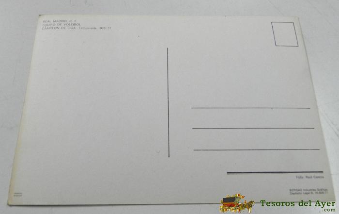 FOTOGRAFIA DEL REAL MADRID DE VOLEIBOL. CAMPEON LIGA. TEMPORADA 1976 / 77, ED. BERGAS, FOTO RAúL CANCIO, MIDE 20,8 X 14,8 CMS.