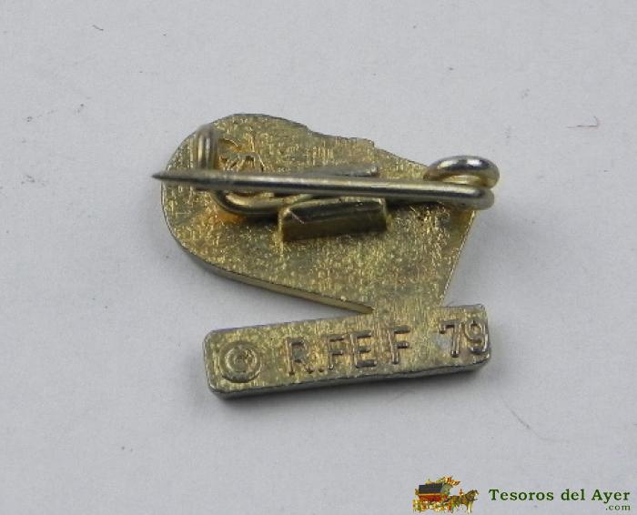 PIN EMBLEMA MUNDIAL FUTBOL ESPAÑA 82 (INSIGNIA IMPERDIBLE FEDERACIÓN ESPAÑOLA FUTBOL), REVERSO CON ALFILER, MIDE 1,5 CMS.