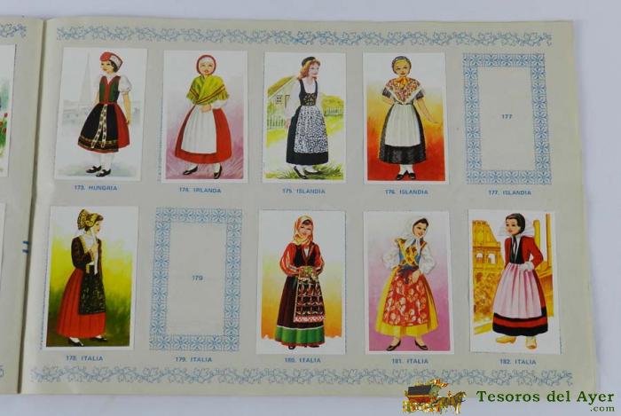 ANTIGUO ALBUM MAGA, TRAJES TIPICOS DE TODO EL MUNDO. CASI COMPLETO. MUY RARO, AÑO 1977, (SE INCLUYEN TODAS LAS PROVINCIAS DE ESPAñA). CASI COMPLETO. SóLO FALTAN 14 CROMOS DE LOS TRAJES DE 216 DE LOS QUE SE COMPONE. LOS NúMEROS QUE FALTAN SON: 1, 9, 17, 29, 57, 122, 124, 149, 177, 179, 203, 205, 207, 214.