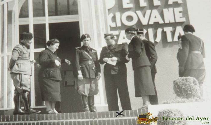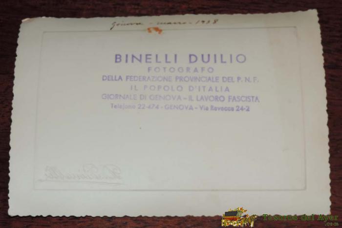 FOTOGRAFIA DE IGNACIO MATEO MARTIN, JERARCA DE FALANGE, PRIMER LOCUTOR DE RADIO NACIONAL DE ESPAÑA, EN VISITA OFICIAL A MILAN EN PLENA GUERRA CIVIL, MARZO 1938, FOTO BINELLI DUILIO, ITALIA, MIDE 17,5 X 12,5 CMS.