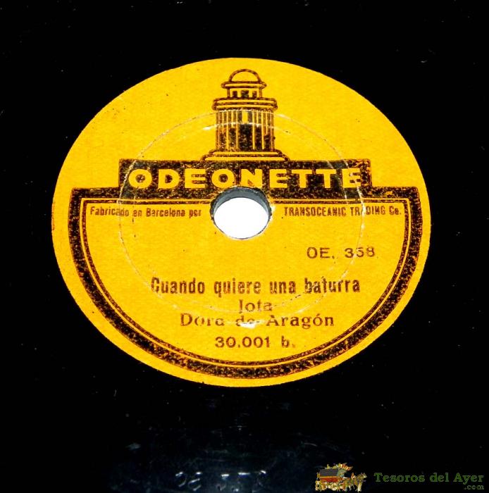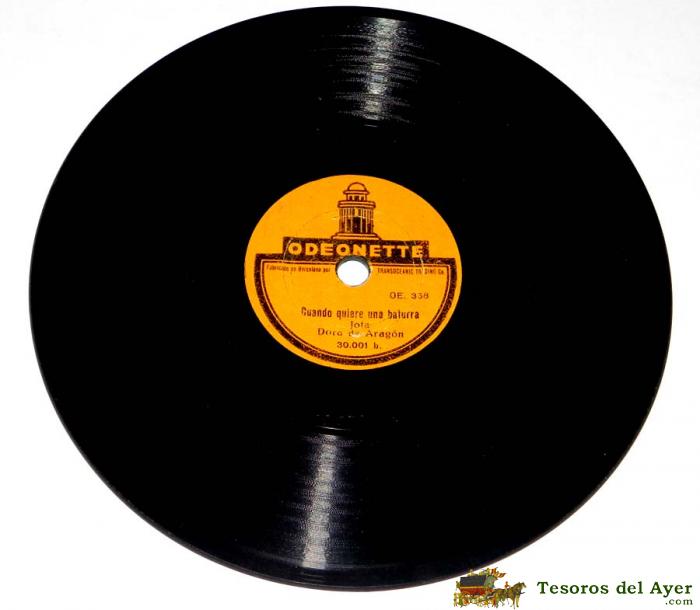DISCO DE PIZARRA CUANDO QUIERE UN BATURRA / SEGADORA, JOTA, DORA DE ARAGON, ED. ODEONETTE, TAMAÑO PEQUEÑO MIDE 14,5 CMS, OE. 358-359, TAL Y COMO SE VE EN LAS FOTOGRAFIAS PUESTAS.