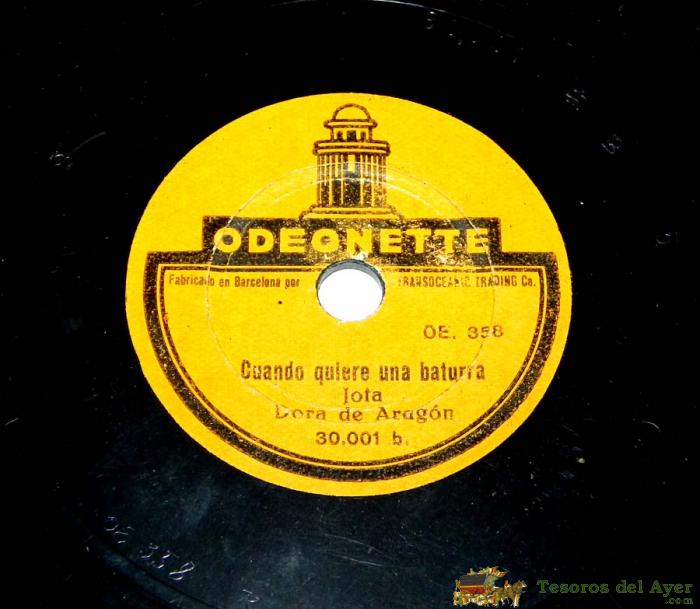 DISCO DE PIZARRA CUANDO QUIERE UN BATURRA / SEGADORA, JOTA, DORA DE ARAGON, ED. ODEONETTE, TAMAÑO PEQUEÑO MIDE 14,5 CMS, OE. 358, TAL Y COMO SE VE EN LAS FOTOGRAFIAS PUESTAS