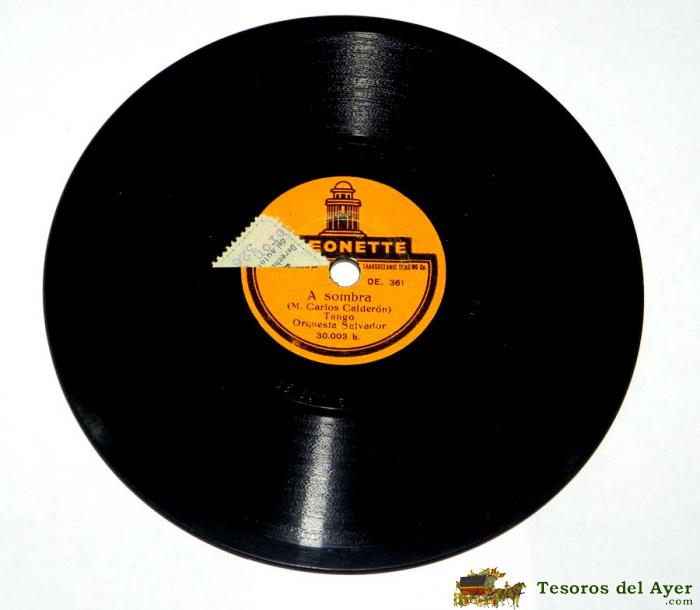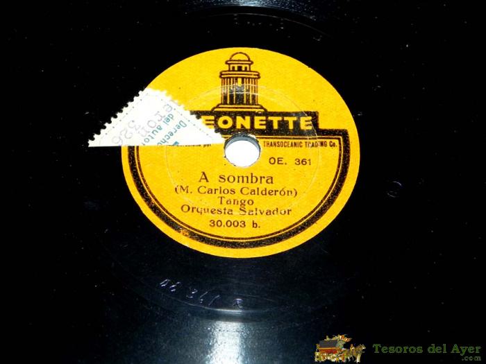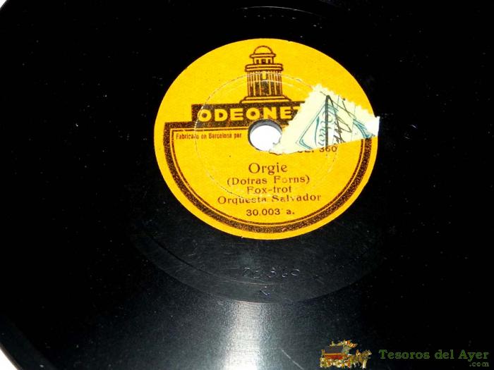 DISCO DE PIZARRA ORGIE / A SOMBRA, FOX TROT-M. CARLOS CALDERON, ED. ODEONETTE, TAMAÑO PEQUEÑO MIDE 15 CMS, OE. 361-360, TAL Y COMO SE VE EN LAS FOTOGRAFIAS PUESTAS.