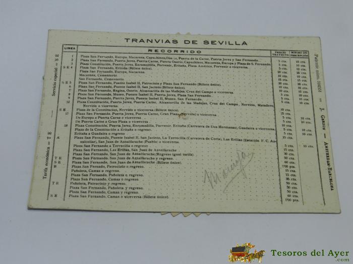 POSTAL PUBLICITARIA DE CEREGUMIL, TRANVIAS DE SEVILLA, ED. J. GARZON, NO CIRCULADA, REVERSO CON LA GUIA DE LAS LINEAS Y PRECIO DE LOS TRAYECTOS.