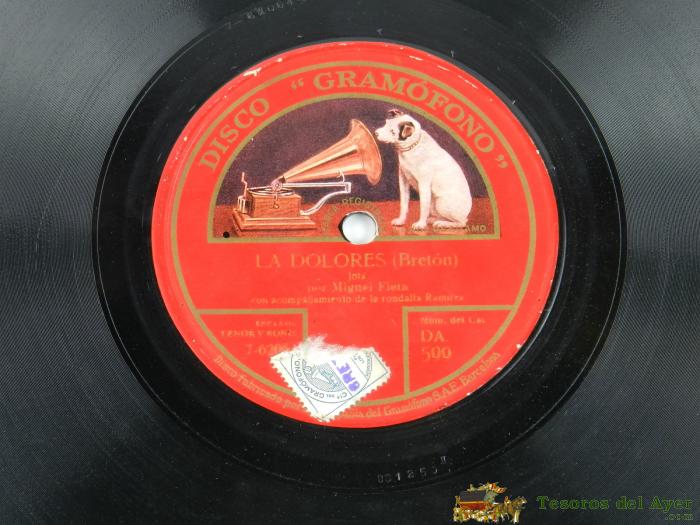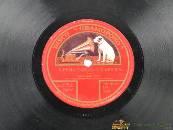 DISCO DE PIZARRA MIGUEL FLETA, LA FEMATERA Y LA VIRGEN / LA DOLORES, ED. LA VOZ DE SU AMO DA.599, A.