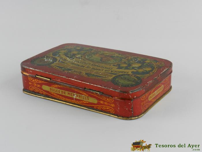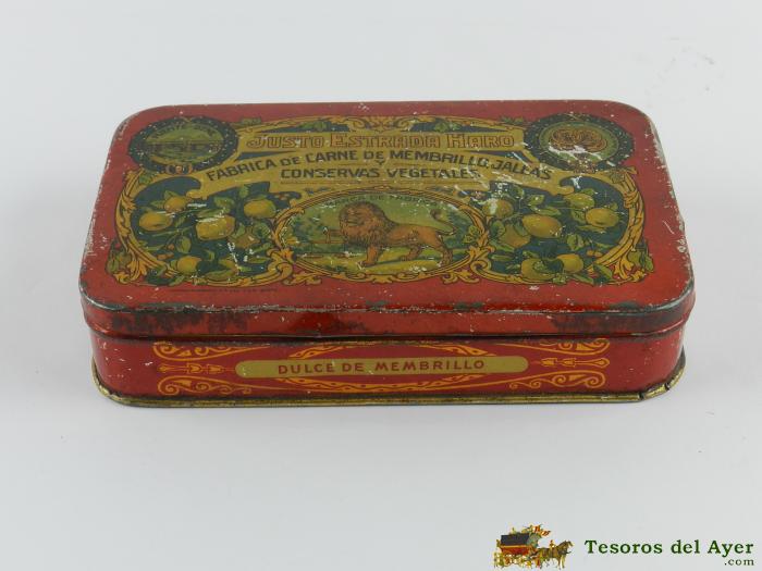 CAJA DE LA FABRICA DE CARNE DE MEMBRILLO JUSTO ESTRADA HARO, PUENTE GENIL, INDUSTRIA METALURGICA, MIDE 18 X 11,5 CMS.