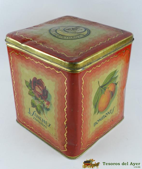 GRAN CAJA DE BOMBONES, CARAMELOS, TURRONES DE J.SáNCHEZ, ZARAGOZA, MUY GRANDE, MIDE 23 X 21 X 21 CMS.