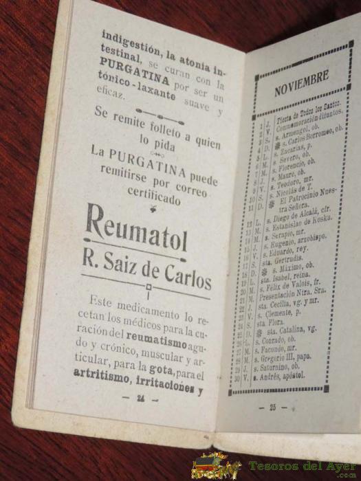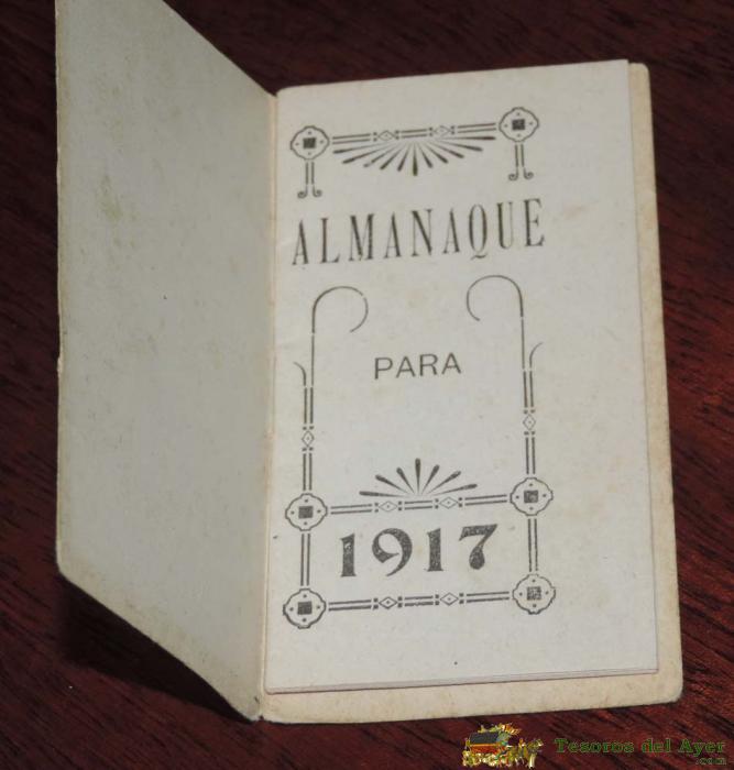 LIBRETA ALMANAQUE 1917, CON PUBLICIDAD ELIXIR ESTOMACAL DE SAIZ DE CARLOS, TIENE 32 PAG. MIDE 17 X 6 CMS.