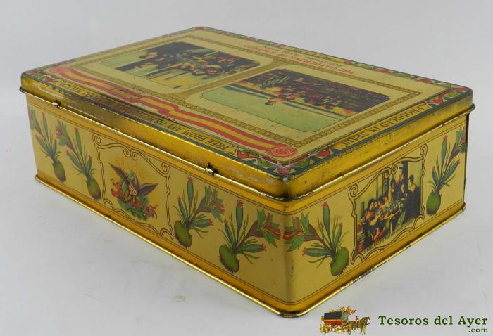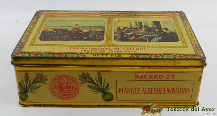 ANTIGUA CAJA DE HOJALATA. NOVELDA. MANUEL ALBEROLA NAVARRO. EXPORTADOR AZAFRANES. MIDE 26 X 17 X 8,5 CMS.