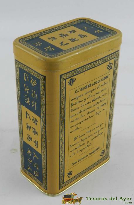 CAJA DE HOJALATA LITOGRAFIADA CON PUBLICIDAD DE THÉ SOUCHONG, MIDE 13 X 8 X 5 CMS.