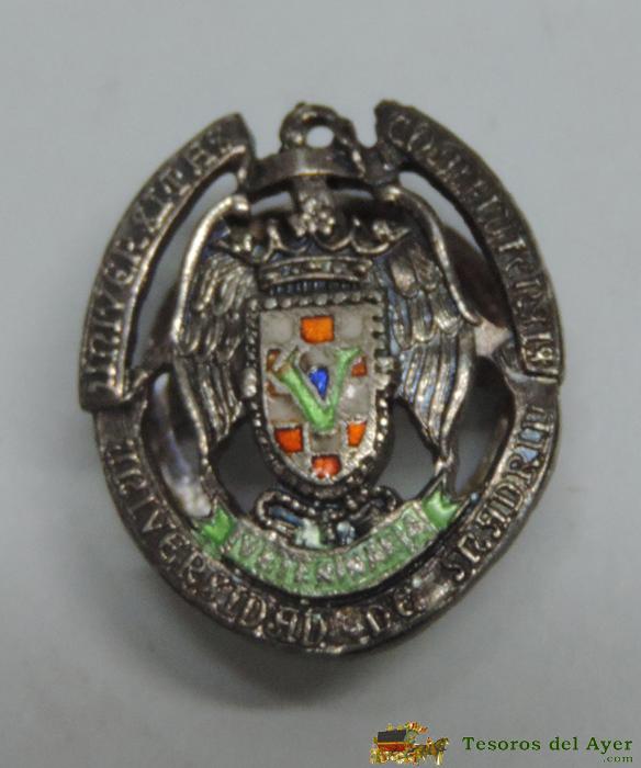 ANTIGUA MINIATURA PARA SOLAPA DE LA UNIVERSIDAD COMPLUTENSE DE MADRID, VETERINARIA - DE PLATA - MIDE 1,9 CMS.
