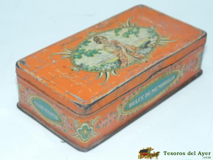 CAJA DE HOJALATA LITOGRAFIADA CON PUBLICIDAD DE MANUEL VELASCO, PUENTE GENIL, FABRICA G. DE ANDREIS, MIDE 13,8 X 7 X 3,8 CMS.