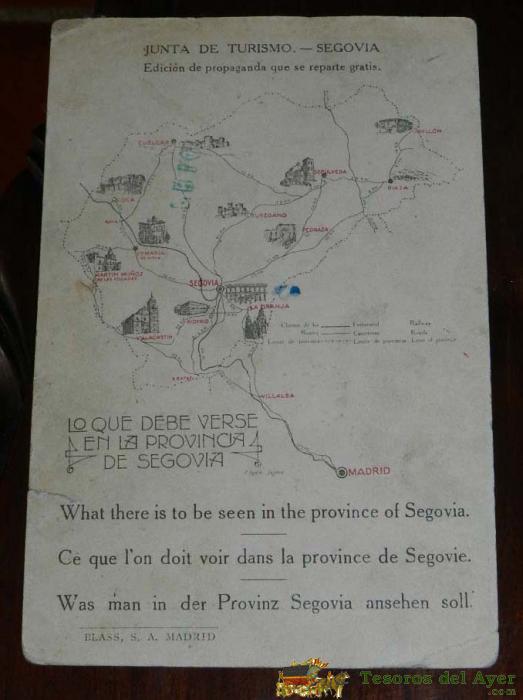 POSTAL DE SEGOVIA. EL ACUEDUCTO. JUNTA DE TURISMO. SEGOVIA. REVERSO CON PLANO DE LA PROVINCIA. ED. BLASS, MADRID, PEQUEÑA RAJITA DE 1 CMS EN LA PARTE DERECHA.