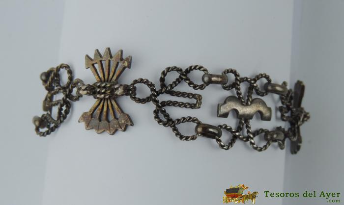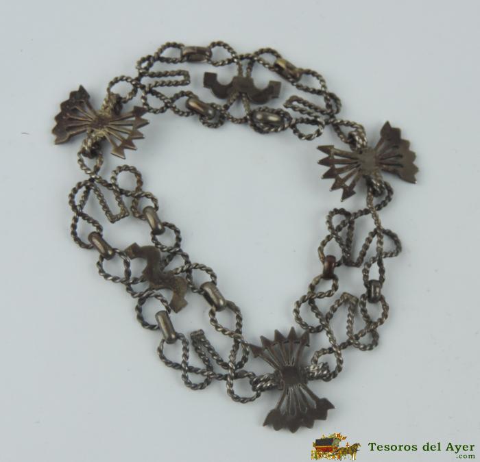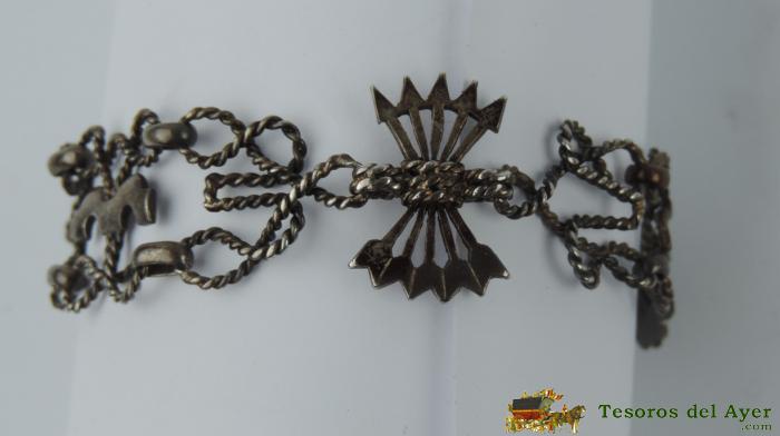EXCEPCIONAL PULSERA DE FALANGE DE PLATA, CON YUGOS Y FLECHAS, PRECIOSA, ESTA COMPLETAMENTE CERRADA SIN SISTEMA DE APERTURA.
