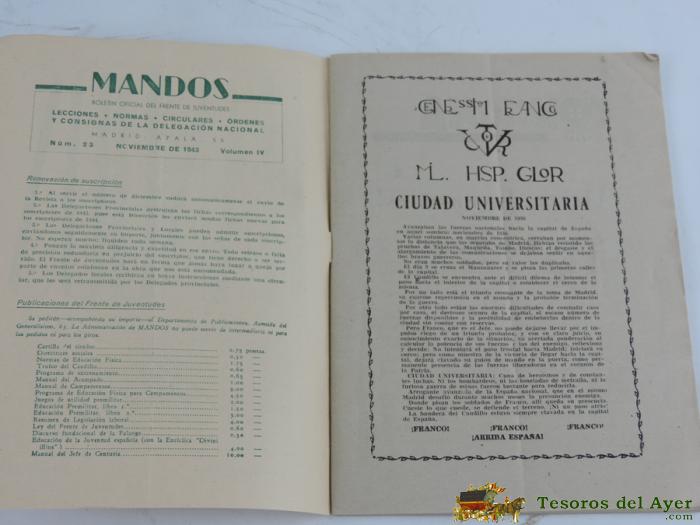 REVISTA DE MANDOS DEL FRENTE DE JUVENTUDES 23 DE 1944, CAMPAMENTOS, HIMNOS, INSTRUCCóN PRE-,MILITAR, JUEGOS, CALENDARIO MENSUAL, NOMBRAMIENTOS, ETC, MIDE 21 X 15,5 CMS.