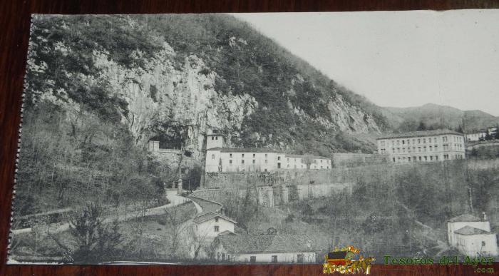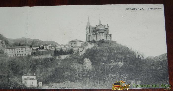 ANTIGUA POSTAL DOBLE DE COVADONGA, ASTURIAS, VISTA GENERAL, ED. E.J.G. PARIS, NO CIRCULADA.