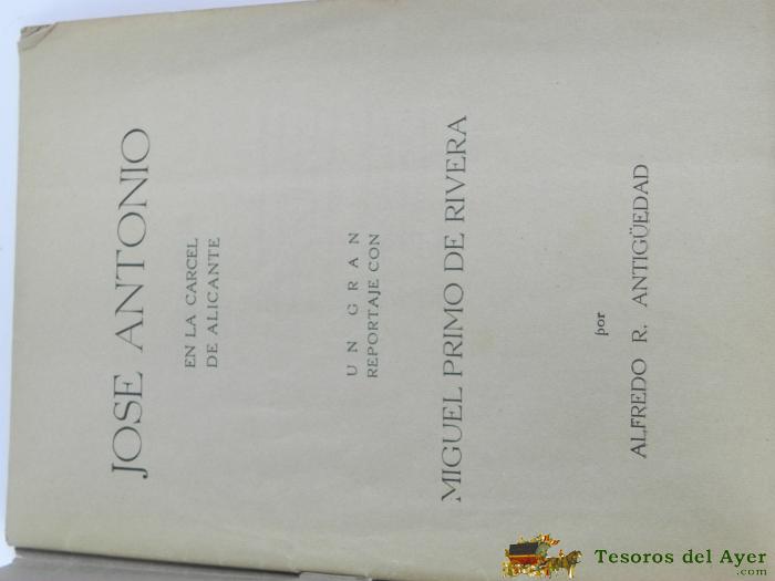 JOSé ANTONIO EN LA CáRCEL DE ALICANTE. UN GRAN REPORTAJE CON MIGUEL PRIMO DE RIVERA, POR ANTIGÜEDAD, ALFREDO R., IMPRENTA ERENSTO GIMéNEZ. MADRID, S/F. TIENE 19 CM. 63 PP.