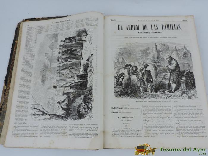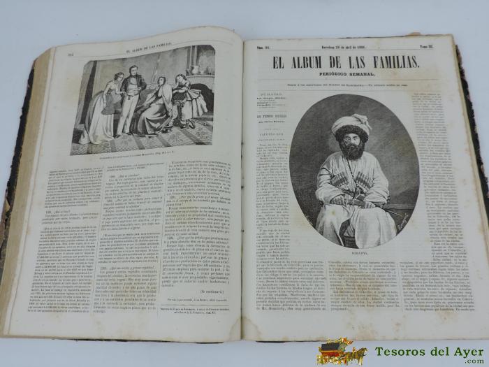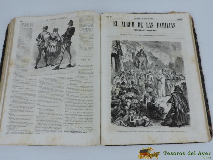 EL ALBUM DE LAS FAMILIAS, PERIODICO SEMANAL DEL DIARIO DE BARCELONA.COLECCION DE LEYENDAS, NOVELAS HISTORICAS, VIAJES, NOTICIAS ETC, ETC DE LA EPOCA Y ESCRITO POR RECONOCIDOS ESCRITORES DE LA EPOCA E ILUSTRADA CON GRAN NUMERO DE GRABADOS. 50 EJEMPLARES ENCUADERNADOS CON TAPAS DURAS, LOMO DE PIEL CON TITULO SERIGRAFIADO Y 396 PAGINAS DESDE EL 21 DE OCTUBRE DE 1860 HASTA EL 29 DE SEPTIEMBRE DE 1861. MEDIDAS: 33,5 X 26 CM