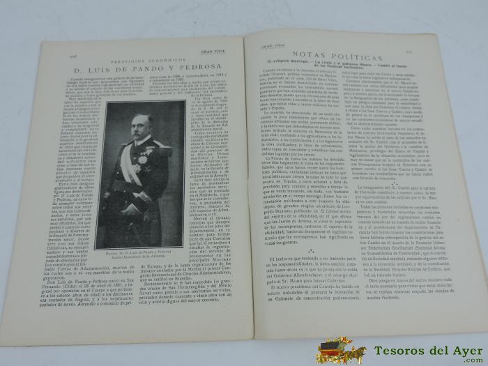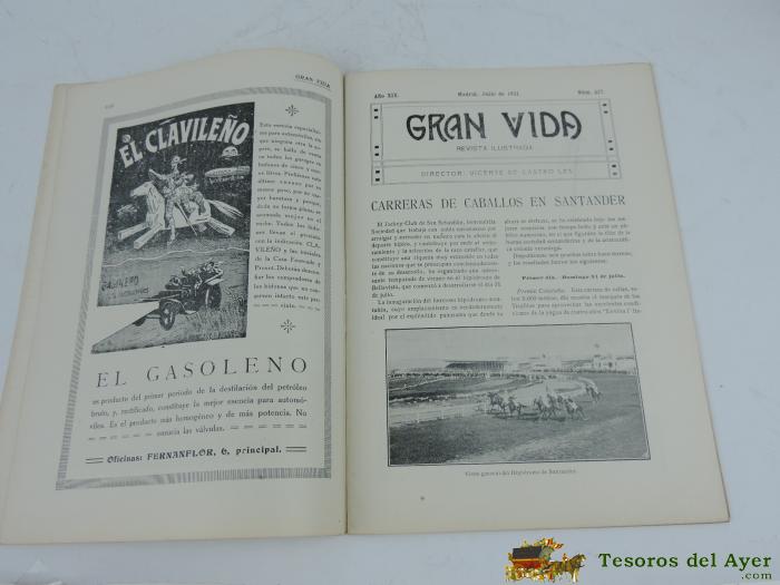 ANTIGUA REVISTA GRAN VIDA, NUM. 217, REVISTA ILUSTRADA TURISMO, DEPORTE, FOTOGRAFIA, JULIO DE 1921, CARRERAS DE CABALLOS EN SANTANDER, LA REINA VICTORIA EUGENIA EN EL HIPODROMO DE SANTANDER.TIENE 28 PAGINAS APROX, MIDE 24 X 17 CMS.