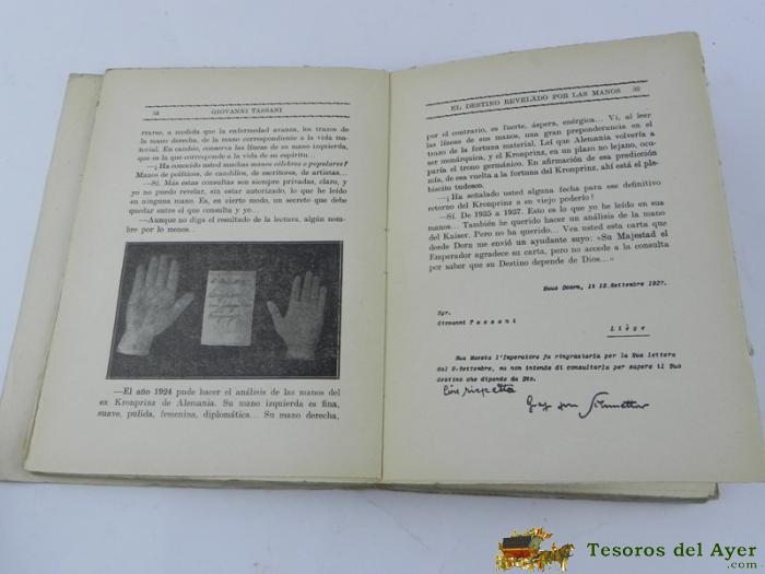 LIBRO EL DESTINO REVELADO POR LAS MANOS, G. TASSANI 1928, ED. MAUCCI. TIENE 224 PáG. MIDE 23 X 16 CMS. RúSTICA. EXPLENDIDO EJEMPLAR CON UN ESTUDIO TEóRICO PRáCTICO EXHAUSTIVO SOBRE LA QUIROMANCIA DEDUCTIVA CON MáS DE 200 BELLAS FOTOGRAFIAS, MUY CURIOSO.