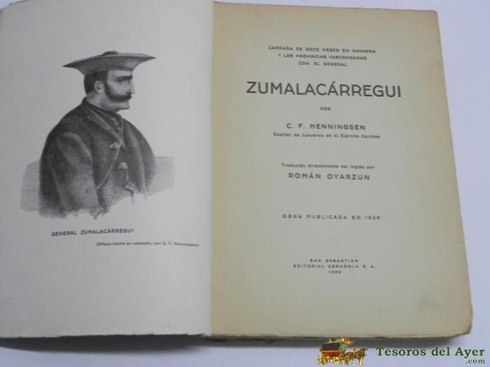 LIBRO DE EL GENERAL ZUMALACáRREGUI POR C.F. HENNINGSEN. SAN SEBASTIáN, EDITORIAL ESPAñOLA AñO 1939. CAMPAñA DE DOCE MESES EN NAVARRA Y LAS PROVINCIAS VASCONGADAS. TIENE 280 PáGINAS. PORTADAS ALGO ROZADAS, INTERIOR EN BUEN ESTADO.