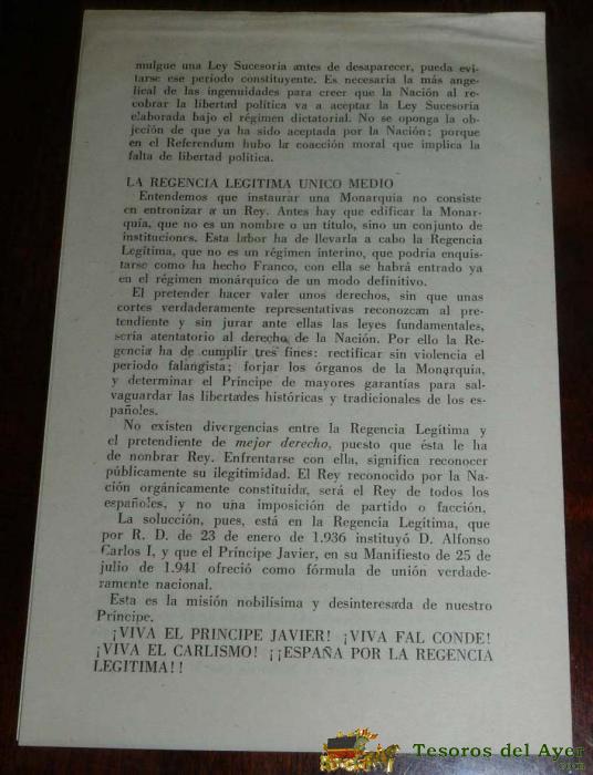 DIPTICO CARLISTA, ESTE ES NUESTRO PRINCIPE DON JAVIER DE BORBON-PARMA Y DE BRAGANZA, CARLISMO, SEGUN MANIFIESTO DE 25 DE JULIO DE 1941, MIDE ABIERTO 24,5 X 19 CMS.