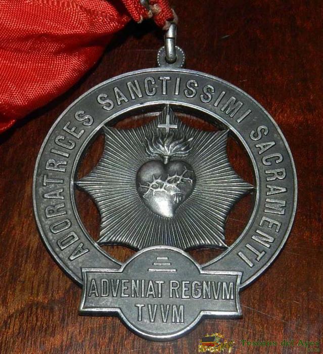 MEDALLA DE LAS ADORATRICES SANCTISSIMI SACRAMENTI. ADVENIAT REGNUM TVVM. MEDALLA METáLICA DE 5 X 5,90 CM.
