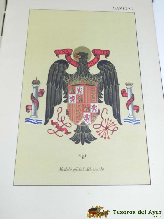 REGLAMENTO DE BANDERAS, INSIGNIAS Y DISTINTIVOS - 1945. CON ESTAMPACIONES EN DORADO Y EN SECO. ILUSTRACIONES A TODO COLOR. MIDE 31 X 22 CM. 22 PAGINAS Y XXIV LAMINAS CON LAS DIFERENTES BANDERAS Y EMBLEMAS. EDICION DE CINCO MIL EJEMPLARES. PUBLICADO COMO D
