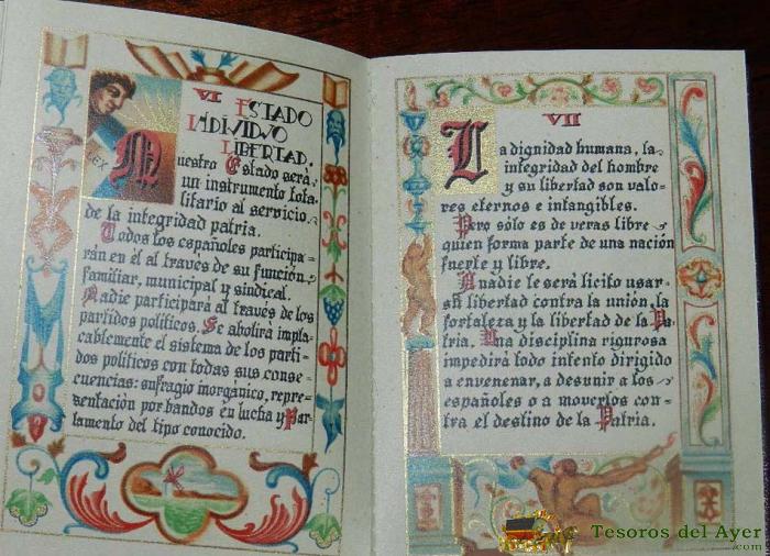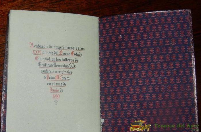 26 PUNTOS EN LOS QUE SUPUESTAMENTE SE FUNDO EL ESTADO Y EL REGIMEN POLíTICO FUNDADOS POR EL GENERAL FRANCO. ESTOS PUNTOS ERAN, A SU VEZ, 26 DE LOS 27 PUNTOS QUE CONSTITUIAN EL PROGRAMA POLíTICO DE FALANGE ESPAñOLA Y DE LAS J.O.N.S. Y QUE EL RéGIMEN SE HABíA APROPIADO EN 1937 AL DECRETAR LA FUSION DE LA FALANGE Y EL REQUETE.