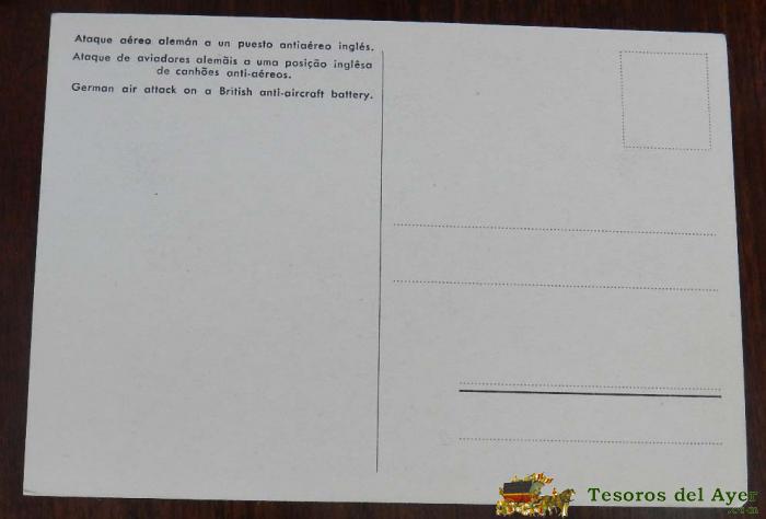 POSTAL ATAQUE AEREO ALEMAN A UN PUESTO ANTIAEREO INGLES, II GUERRA MUNDIAL, MIDE 14,5 X 10,5 CM