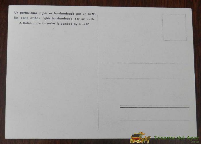 POSTAL DE UN PORTAVIONES INGLES ES BOMBARDEADO POR UN JU. 87, II GUERRA MUNDIAL, MIDE 14,5 X 10,5 CM