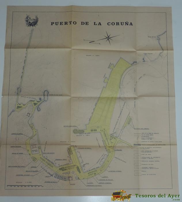 PLANO DESPLEGABLE DEL PUERTO DE LA CORUÑA, MIDE DESPLEGADO 58 X 53 CMS.