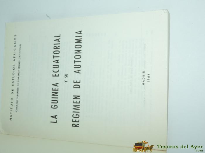 LIBRO LA GUINEA ECUATORIAL Y SU RÉGIMEN DE AUTONOMÍA, V.V.A.A., ED.C.S.I.C. MADRID, AÑO 1964, TAPA BLANDA, MIDE 21,5 X 15,5 CMS.