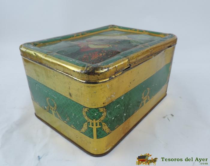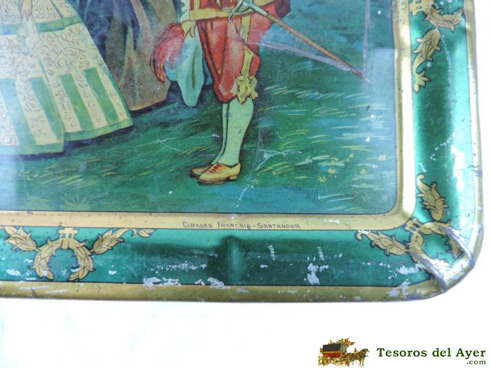 ANTIGUA CAJA DE HOJALATA LITOGRAFIADA ,CIRAGES FRANCAIS, SANTANDER MIDE 25 X 18 X 7,5 CMS. - BUEN ESTADO
