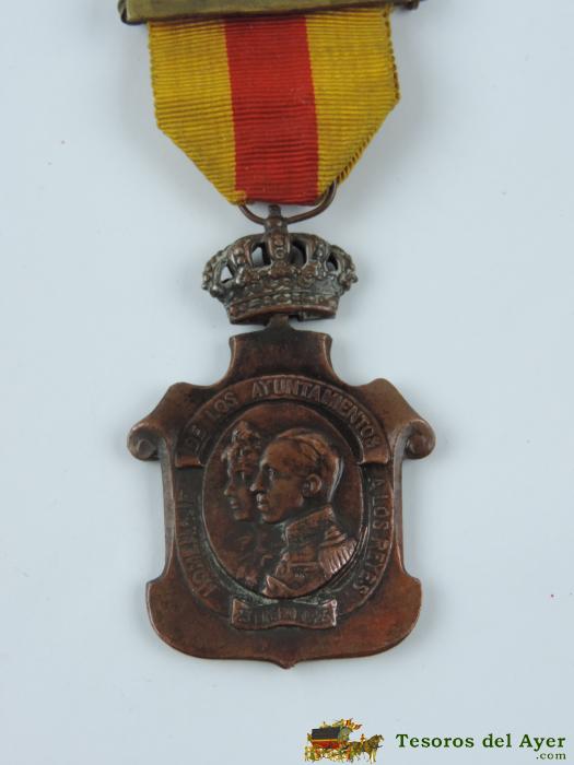 MEDALLA HOMENAJE DE LOS AYUNTAMIENTOS A LOS REYES. TODOS Y TODO POR LA PATRIA. 23 DE ENERO DE 1925. MEDIDAS: 5,5 X 3,7 CMS.