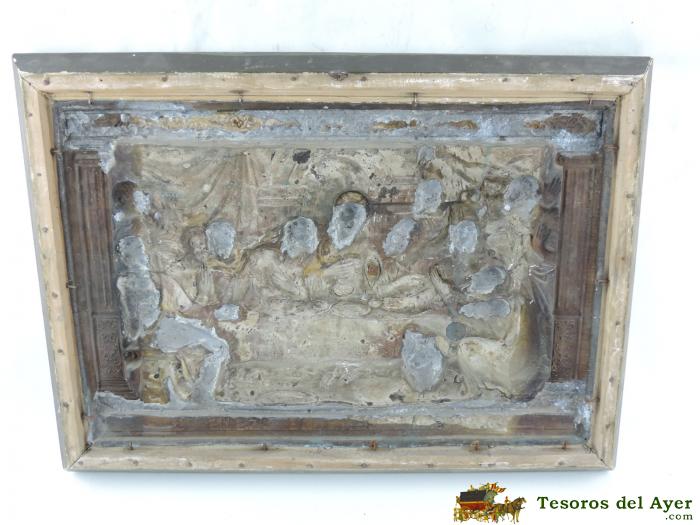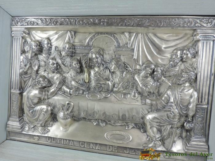 ANTIGUA CUADRO DE LA ULTIMA CENA DE JESUS, REALIZADO EN COBRE REPUJADO, MIDE 56 X 40 CMS.
