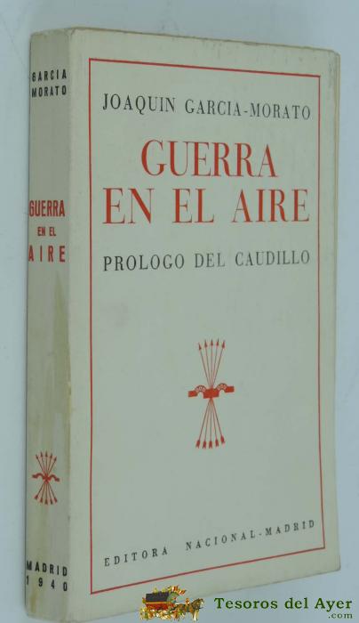 ANTIGUO LIBRO GUERRA EN EL AIRE - PROLOGO DEL CAUDILLO FRANCO - JOAQUIN GARCIA MORATO EL AS DE LA AVIACION NACIONAL - EN PERFECTO ESTADO DE CONSERVACION - AÑO 1940 - EDITORIAL NACIONAL DE MADRID - INCLUYE FOTOGRAFIAS - 210 PAGINAS.