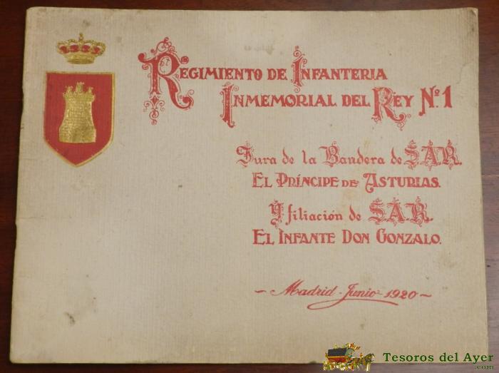 REGIMIENTO DE INFANTERIA INMEMORIAL DEL REY Nº 1. JURA DE LA BANDERA DE S.A.R. EL PRINCIPE DE ASTURIAS. ED. REGIMIENTO DE INFANTERIA, 1920, TAPA BLANDA, MIDE 28 X 22 CMS. TIENE 32 PAG.