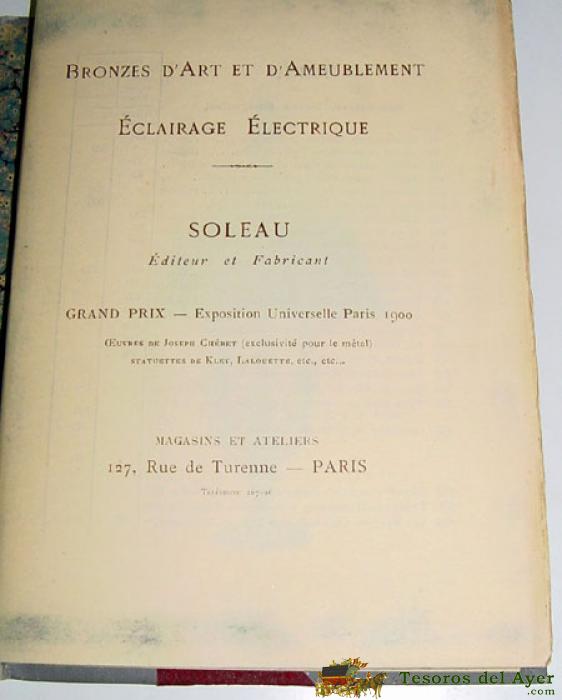 ANTIGUO CATALOGO MODERNISTA - ART NOUVEAU - BRONZES D´ART ET D´AMEUBLEMENT - ECLAIRAGE ELECTRIQUE - SOLEAU EDITEUR ET FABRICANT - GRAND PRIX - EXPOSITION UNIVERSELLE PARIS 1900 (EUVRES DE JOSEPH CHERET, STATUETTES DE KLEY, LALOUETTE ETC... - TIENE 34 LAMINAS EN CARTULINA - MIDE 21 X 15 CMS. - PRINCIPIOS DE SIGLO