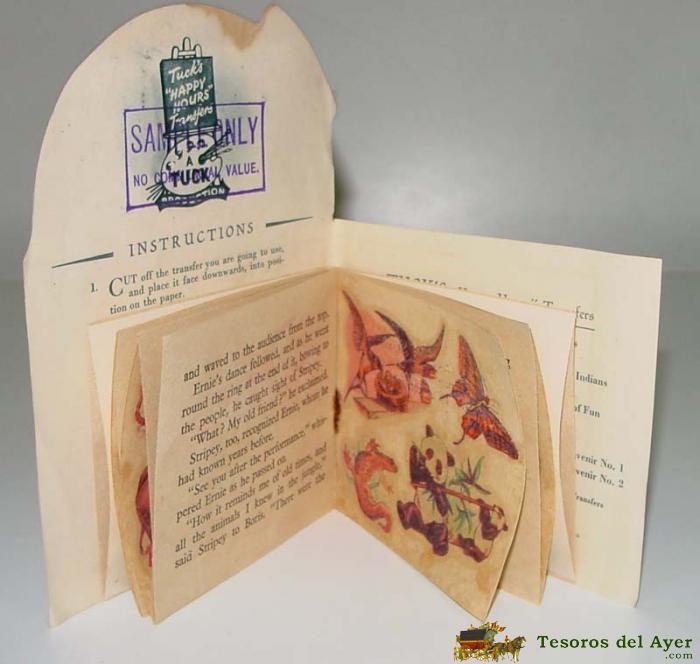 ANTIGUO CUENTO CON CALCAMONIAS INGLESAS - TUCK´S HAPPY HOURS - TRANSFERS - JOLLY ANIMALS - RAPHAEL TUCK & SONS LTD. MUY BUEN ESTADO DE CONSERVACION. A TUCK BOOK. PERTENECIA AL MUESTRARIO DE UN REPRESENTANTE INGLÉS DE CUENTOS CON SELLO EN LA PORTADA QUE PONE SAMPLE ONLY NO COMMERCIAL VALUE - 11,5 X 16 CMS - 6 LAMINAS CON CALCAMONIAS