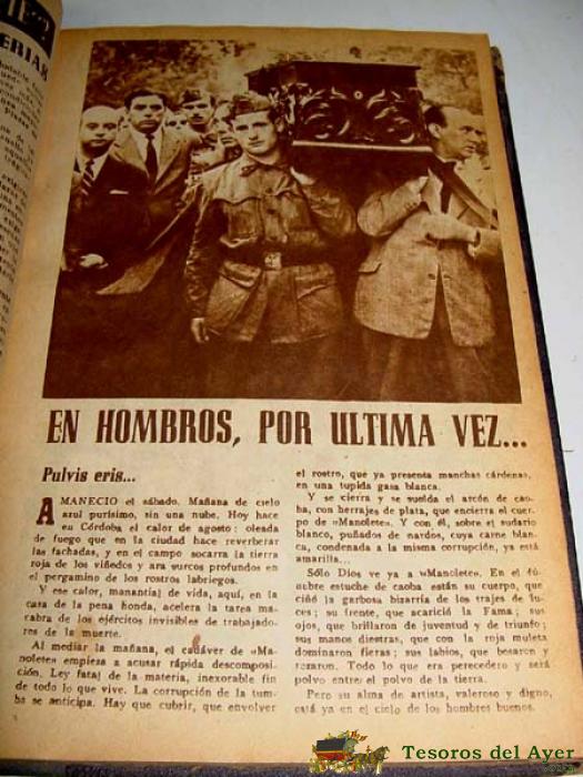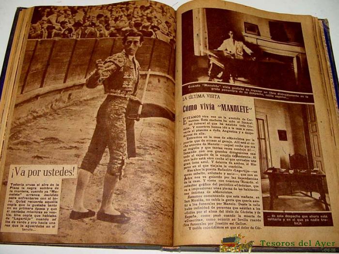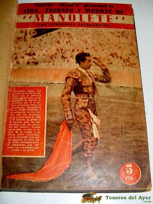 2ª ¡MANOLETE! EL DOLOR DE SU VIDA Y LA TRAGEDIA DE SU MUERTE - POR M. GARCIA SANTOS - PROLOGO DE ALVARO DOMECQ - DIBUJOS E HISTORIETAS DE MARTINEZ DE LEON - 100 PAGINAS, CON MUCHISIMAS FOTOS.