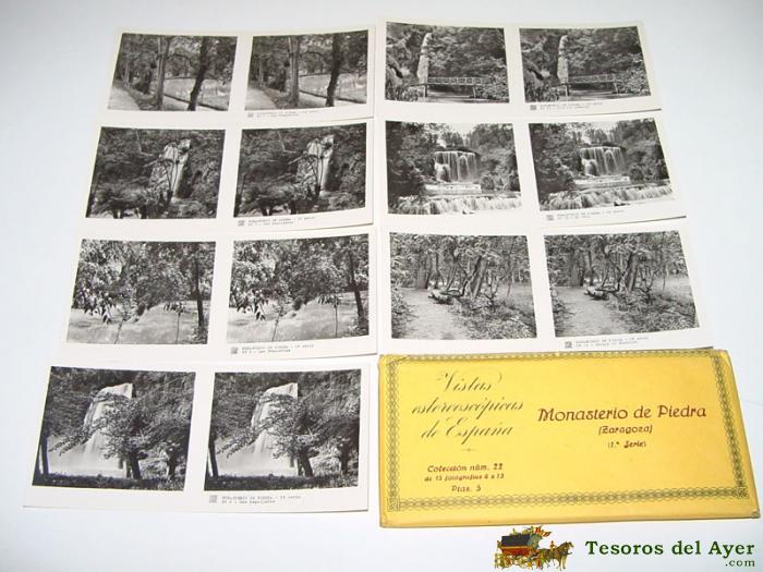 ANTIGUAS CUADERNILLO CON 15 VISTAS ESTEREOSCOPICAS DE MONASTERIO DE PIEDRA (ZARAGOZA) - 1ª SERIE - MIDE 6X13 CMS.