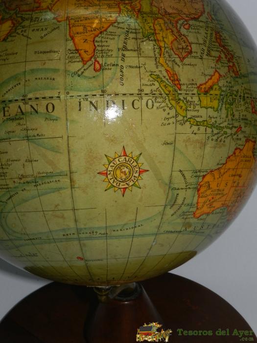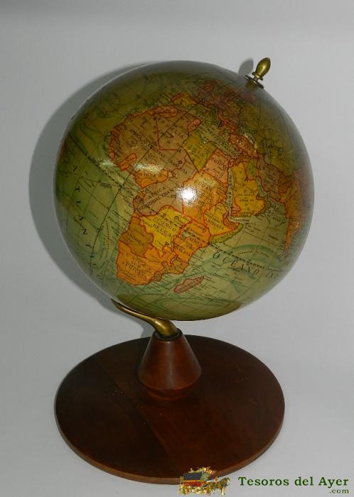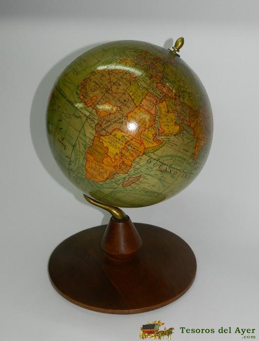 ANTIGUO GLOBO TERRAQUEO DALMAU CARLES PLA - MIDE 37 CMS. DE ALTURA - BUEN ESTADO DE CONSERVACION - BASE DE MADERA, TAL Y COMO SE VE EN LAS FOTOGRAFIAS