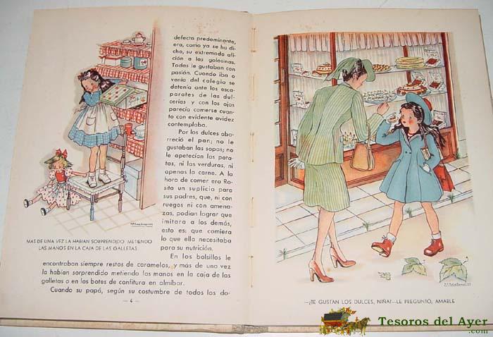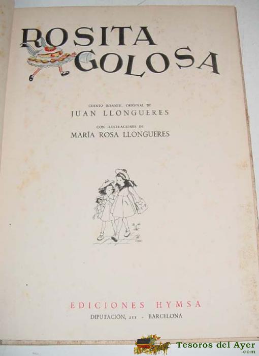 ROSITA GOLOSA - LLONGUERES, JUAN - LLONGUERES, MARíA ROSA (IL.) BARCELONA. EDICIONES HYMSA. S/D. 4º MAYOR. 32PP., ILUSTRACIONES B/N Y COLOR. CARTONé CON LOMO DE TELA. AÑOS 40