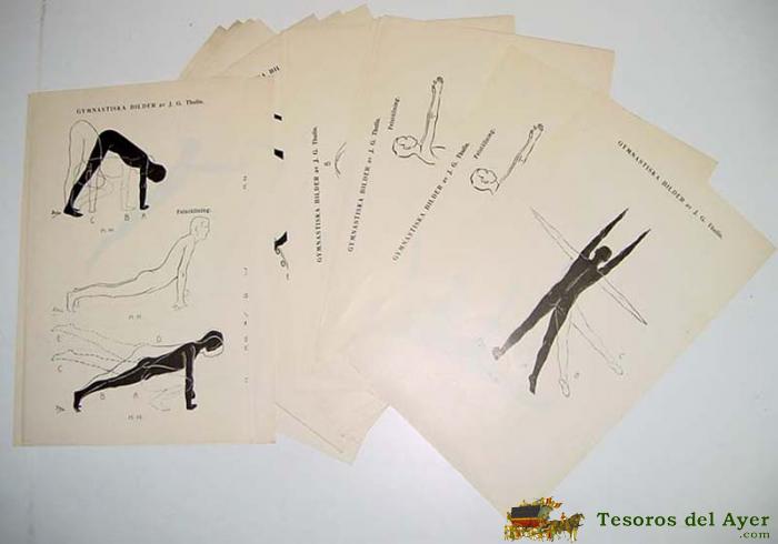 GYMNASTISKA BILDER – J.G. THULIN – SYDSVENSKA GYMNASTIK INSTITUTET, LUND 1921 – FICHAS DE GIMNASIA - MEDICINA DEPORTIVA - AUTOGRAFIADO Y DEDICADO POR EL AUTOR AL DOCTOR D. LUIS AGOSTI EN 1946
