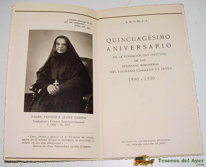 QUINCUAGESIMO ANIVERSARIO DE LA FUNDACION DEL INSTITUTO DE LAS HERMANAS MISIONERAS DEL SAGRADO CORAZON DE JESUS 1880 - 1930 - CALENDARIO 1930 - 32 PAGINAS - 21 X 12 CMS. - MUCHAS FOTOGRAFIAS